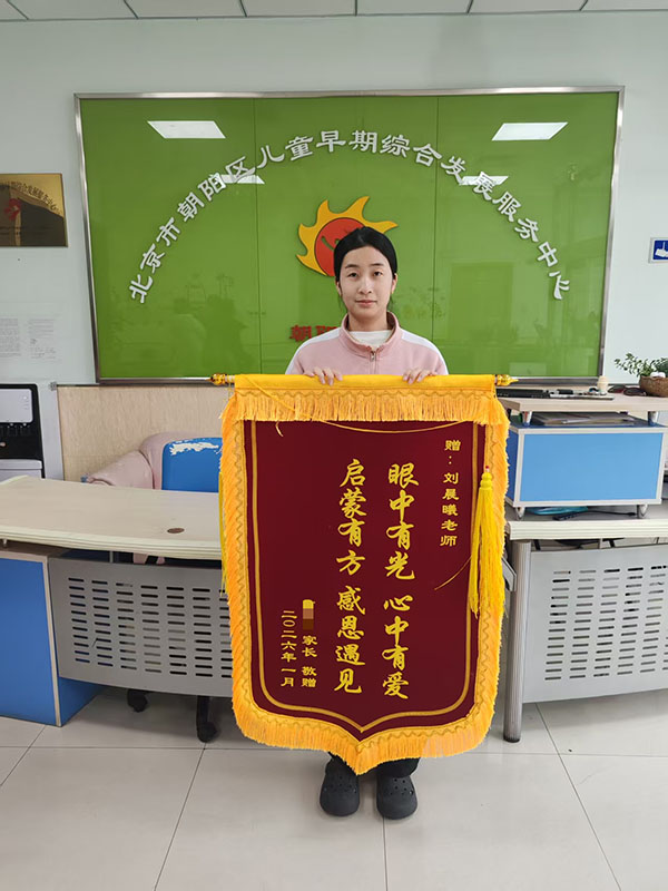 这面锦旗不仅是铭铭家庭的感恩,更是朝阳区妇幼保健院服务的初心。在朝阳区妇幼保健院的儿童干预训练中心,有许多像铭铭一样的孩子,在康复团队的陪伴下缓缓前行。老师们用专业的干预方法、日复一日的坚守与爱,不仅改变着孩子们的人生轨迹,更托举起一个又一个家庭的希望。未来,这支充满温度的团队将继续以专业为舟、以爱为帆,让更多特殊儿童听见世界的声音,让更多深陷困境的家庭重拾生活的底气,在通往康复的道路上,不再孤单!
